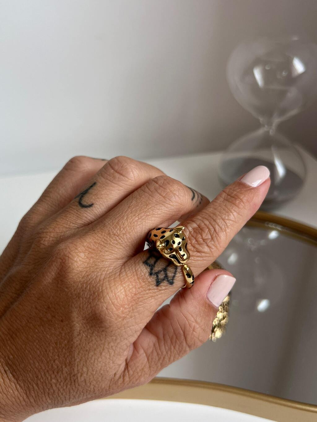 Este anel traz um design inspirado na beleza selvagem da onça pintada, combinando sofisticação e força natural. Com detalhes que remetem às manchas únicas dessa felina, a peça é perfeita para quem gosta de acessórios marcantes e com personalidade. Seu acabamento delicado revela uma estética moderna e cheia de estilo, ideal para complementar looks sofisticados ou casuais com um toque de ousadia.