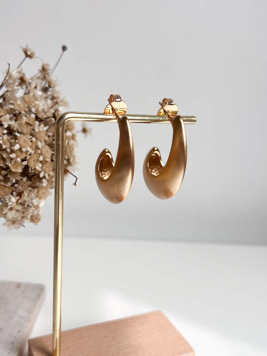 Esse brinco é aquele estilo clean, mas cheio de atitude! Com formato de anzol abaulado e acabamento escovado, ele fica super discreto e elegante ao mesmo tempo. Perfeito pra quem curte uma vibe mais minimalista, mas que não abre mão de um toque de charme na produção.