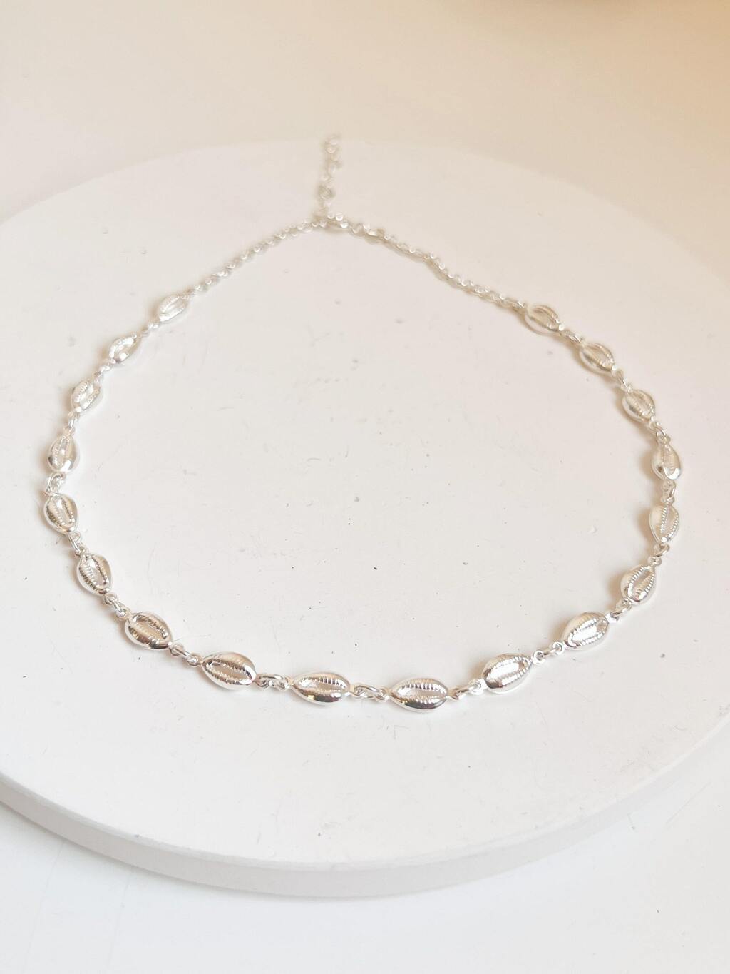 Este choker de prata com búzios retos oferece um visual moderno e sofisticado. Com acabamento refinado, ela é perfeita para dar um toque delicado e elegante ao seu pescoço, podendo ser usada sozinha ou em combinação com outros acessórios. Versátil e atemporal, é uma peça que valoriza qualquer look, seja casual ou mais sofisticado, trazendo um charme natural inspirado na nossa cultura marítima.