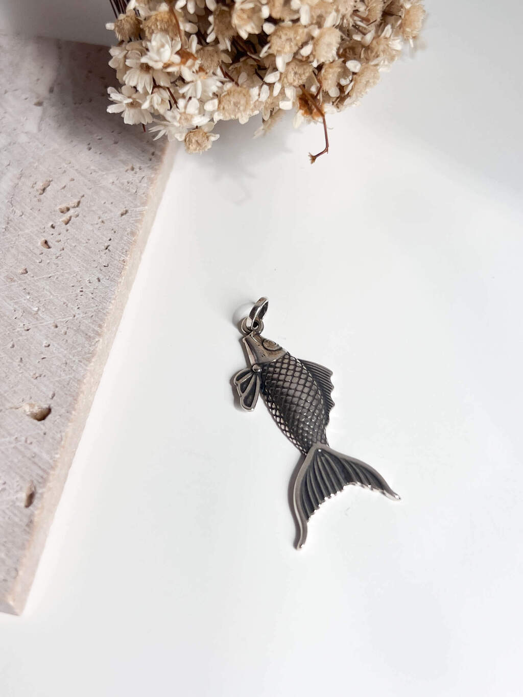 Esse pingente é cheio de simbolismo e estilo! Com um design de peixe carpa, ele traz toda aquela vibe de força, sorte e perseverança. Feito em prata 925, é uma peça que chama atenção pelo charme e pelo significado poderoso que carrega. Pode usar sozinho ou montar um colar bem bacana combinando com outros acessórios.