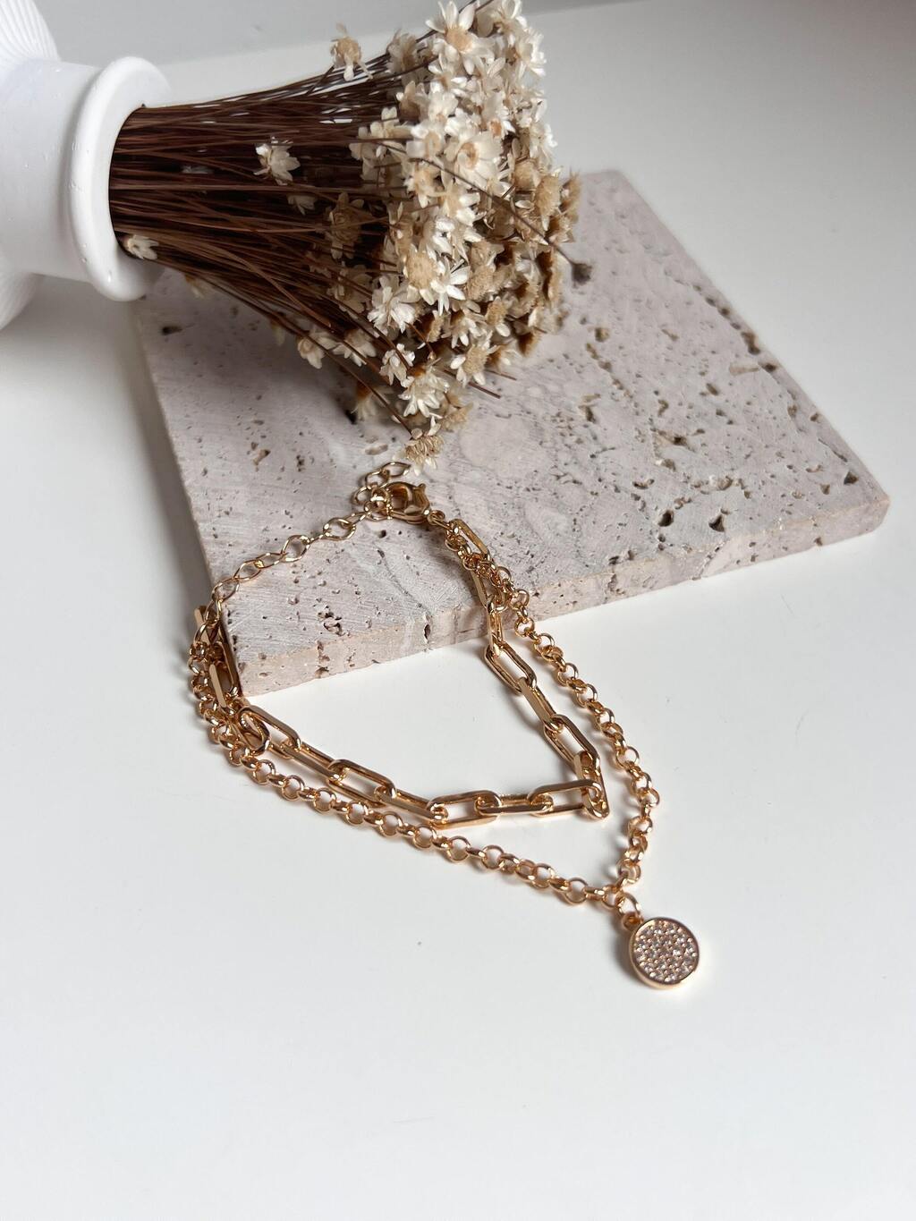 Essa pulseira é aquele acessório que combina elegância e estilo de um jeito bem versátil! Com elos Cartier duplos que deixam o visual mais sofisticado, ela ganha ainda mais charme com um pingente redondo cravejado, cheio de brilho e personalidade. Pode usar sozinha para um look mais discreto ou montar um mix de pulseiras para um visual cheio de atitude.