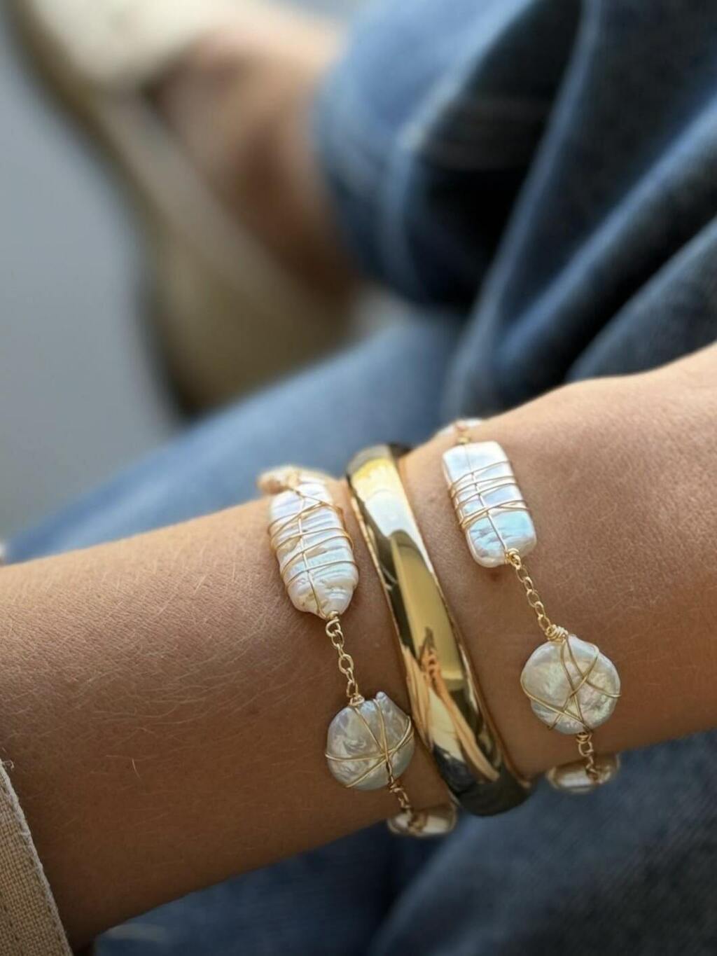 Essa pulseira toda feita de pérola de água doce é um amor à parte! Com um design que parece abraçar o seu braço, ela tem um visual bem natural, delicado e cheio de charme. Toda de pérola, ela deixa seu look mais leve, sofisticado e cheio de personalidade — perfeita para usar sozinha ou misturada com outras pulseiras para criar um visual mais estiloso.
